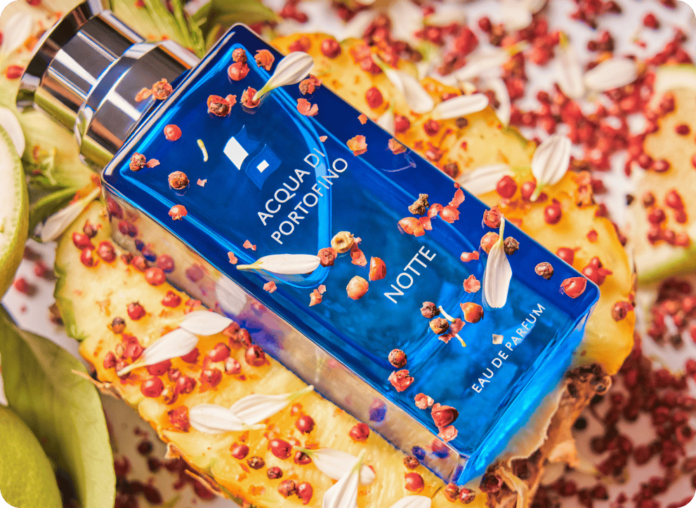 Vivi l'estate notturna con il nostro profumo. Note di testa di bergamotto, ananas, limone e pepe rosa catturano l'aria marina e l'atmosfera stellata. Nel cuore, freschezza, cashmeran e gelsomino creano un bouquet avvolgente. Note di fondo di legno di ulivo, ambra, muschio di quercia e patchouli bianco rivelano la sensualità perfetta per serate indimenticabili sotto il cielo stellato di Portofino.